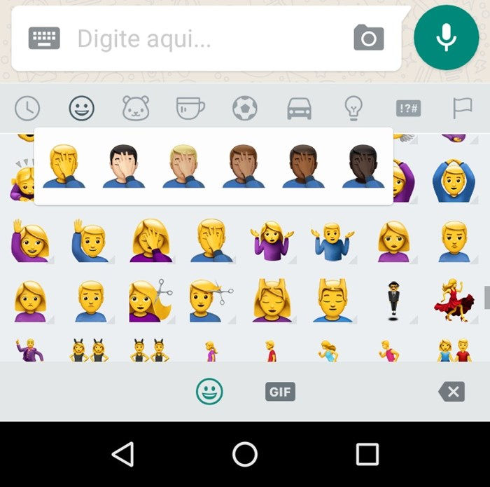 Uma nova versão do WhatsApp Beta começou a ser distribuída hoje e trouxe para os usuários do Android os novos emojis do iOS, que chegaram à plataforma da Apple diretamente no sistema há alguns meses. Entre as novidades, temos o palhaço, a carinha feliz com chapéu de cowboy e também uma série de variantes masculinas e femininas do famoso “facepalm”.